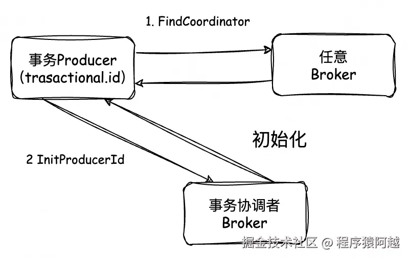 3)事务生产者,发送InitProducerId给事务协调者;