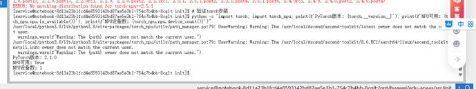 | Bash # 验证torch安装 python -c "import torch; import torch_npu; print(f'PyTorch版本: {torch.version}'); print(f'NPU可用: {torch_npu.npu.is_available()}'); print(f'NPU设备数: {torch_npu.npu.device_count()}')" |