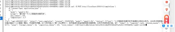 | Bash # 返回工作目录 cd ~ # 启动vLLM服务 vllm serve ./models/qwen2-1.5b \ --host 0.0.0.0 \ --port 8000 \ --max-model-len 4096 \ --enforce-eager \ --served-model-name qwen2-1.5b |