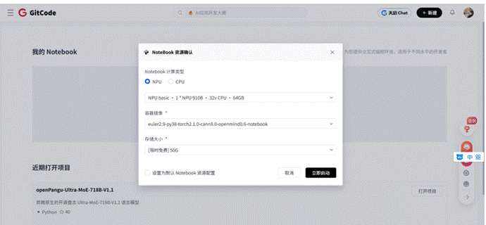 - 硬件规格:NPU basic · 1*NPU 910B · 32v CPU · 64GB