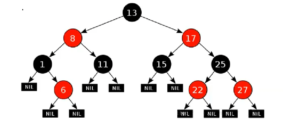 - 如果一个节点是红色的,则它的两个孩子结点必须是黑色的 (任何路径都不会存在连续的红色结点,但是可以存在连续的黑色节点)