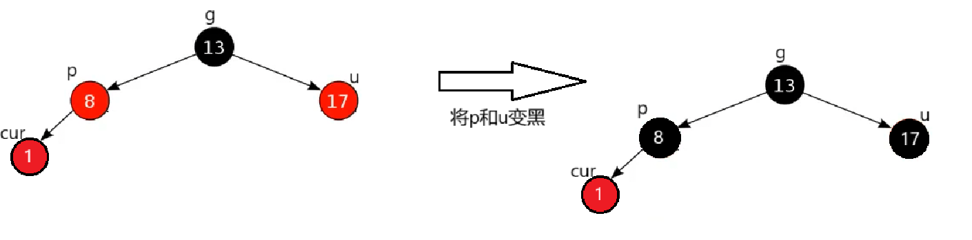 情况一: cur为红,p为红,g为黑,u存在且为红