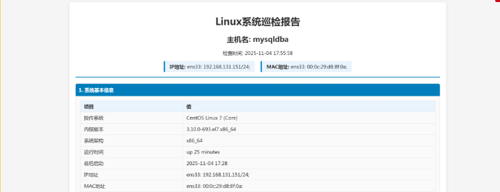在日常运维工作中,定期对Linux服务器进行健康检查是必不可少的工作。然而,手动检查各项指标既耗时又容易遗漏重要信息。今天,我们将为大家分享一个功能强大的Linux自动巡检脚本,只需简单一行命令,就能生成专业的HTML巡检报告!