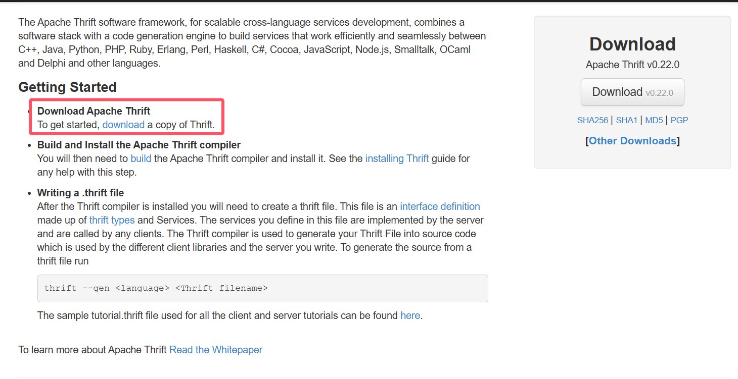 1.官方地址:http://thrift.apache.org/