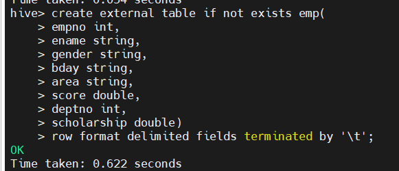 (1)创建外部表emp