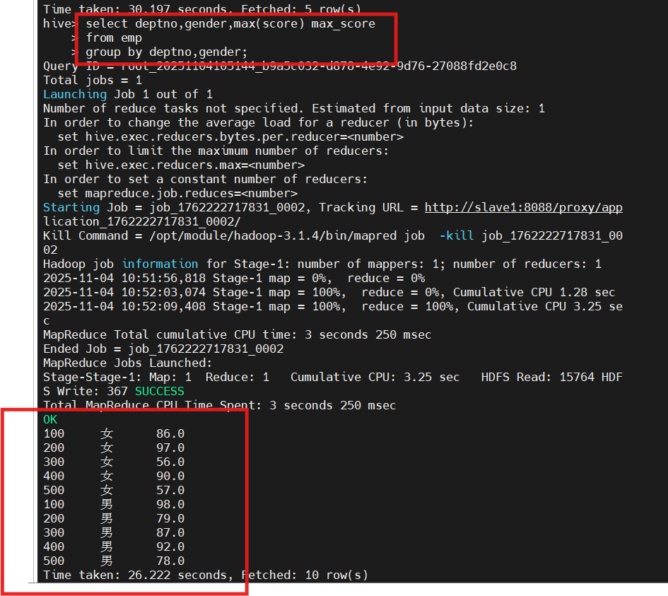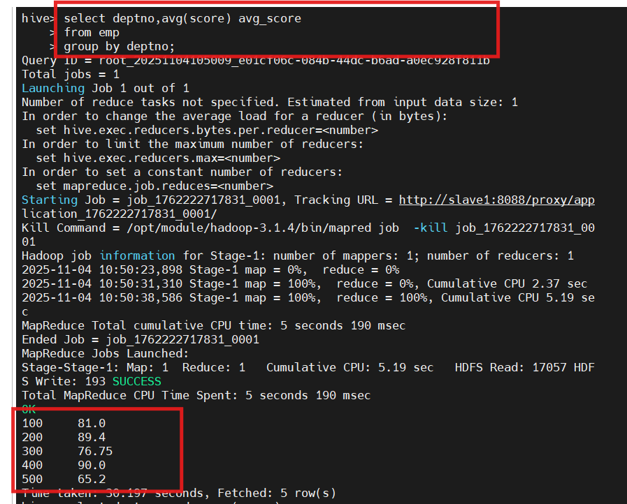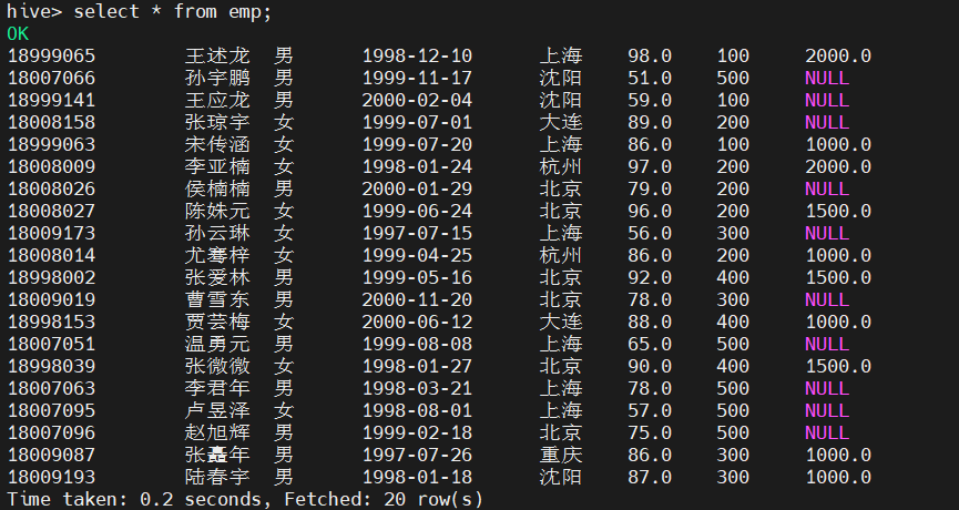 1.需求 创建学生emp外部表,向外部表中导入数据,并应用比较运算符做简单查询。