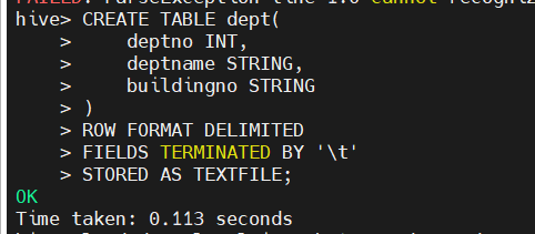 ROW FORMAT DELIMITED
