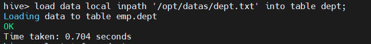 load data local inpath '/opt/datas/dept.txt' into table dept;