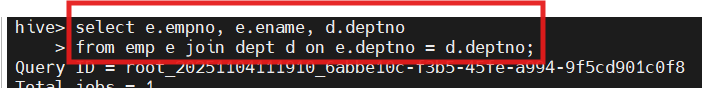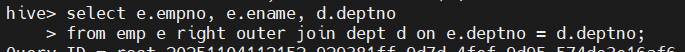 e LEFT SEMI JOIN dept d ON e.deptno = d.deptno;