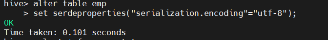alter table emp set serdeproperties('serialization.encoding'='utf-8');