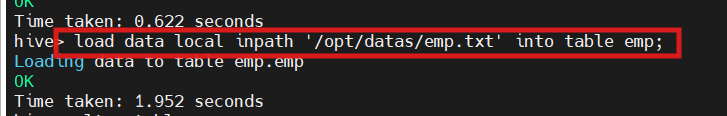 load data local inpath '/opt/datas/emp.txt' into table emp;