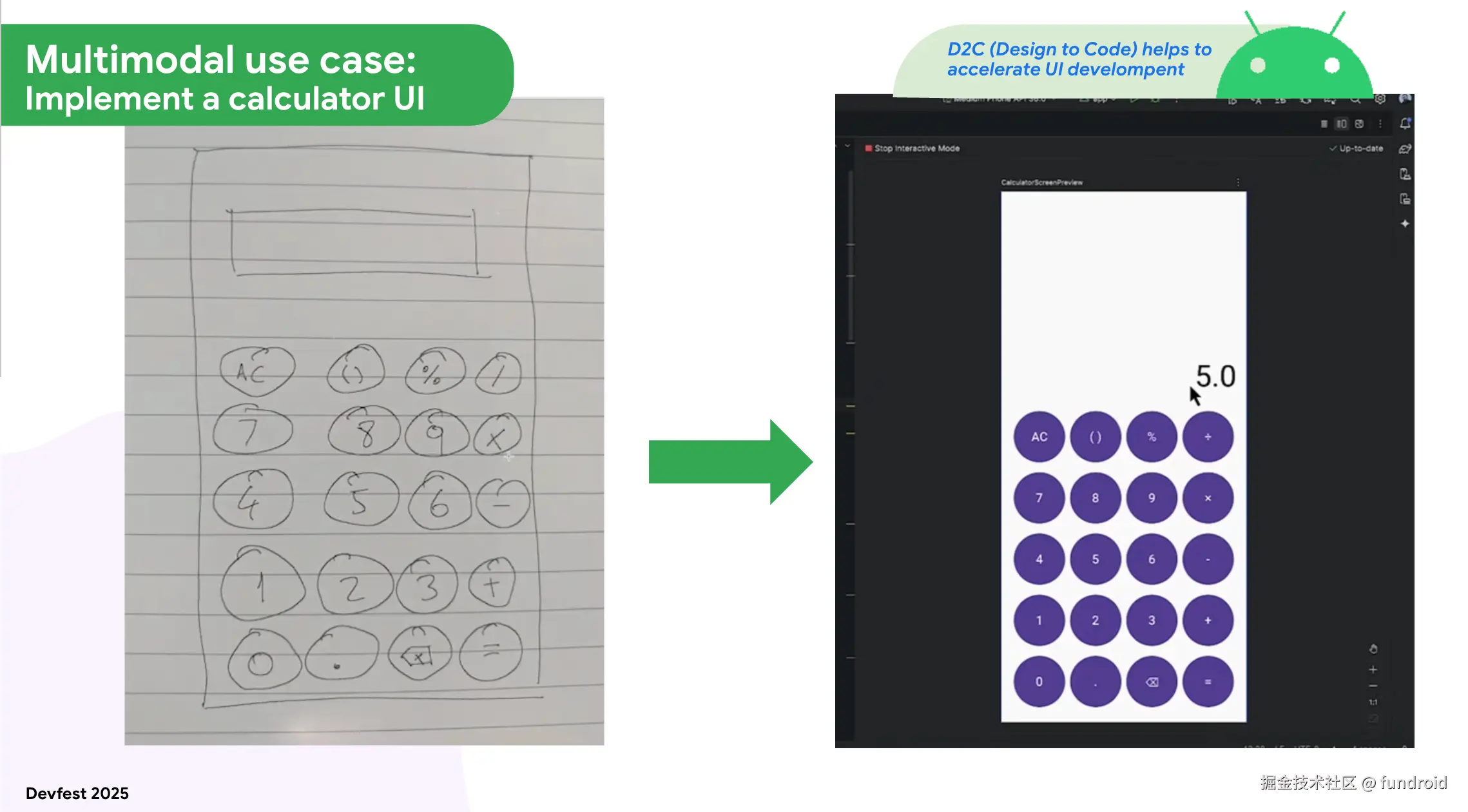 多模态能力让 "设计即代码" 成为现实:开发者只需手绘一张 UI 草稿,AI 就能快速转化为可运行的代码原型,原本需要两小时的计算器开发任务,如今几分钟就能完成基础搭建。