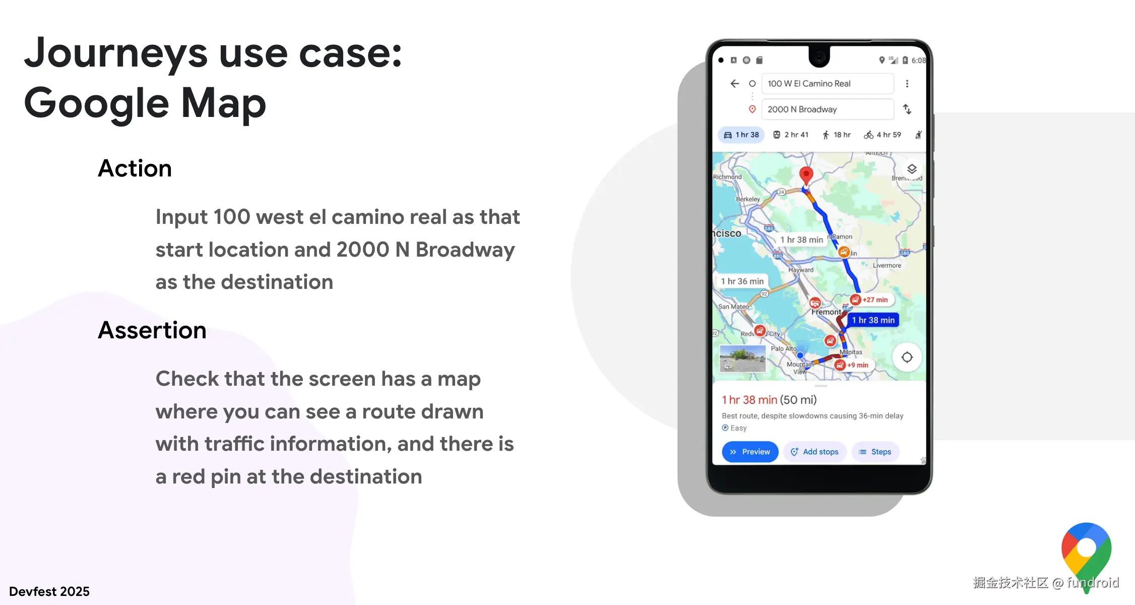 谷歌地图团队已在内部通过 Journeys 进行测试实践,极大提升了测试效率,尤其对于地图这类 UI 组件复杂的应用,效果更为显著。