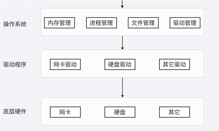 操作系统内核一般有四大功能:**驱动管理(与外设有关),内存管理(与内存有关),文件系统(与磁盘有关),进程管理,**任何一个计算机类的设备都需要这四大功能。