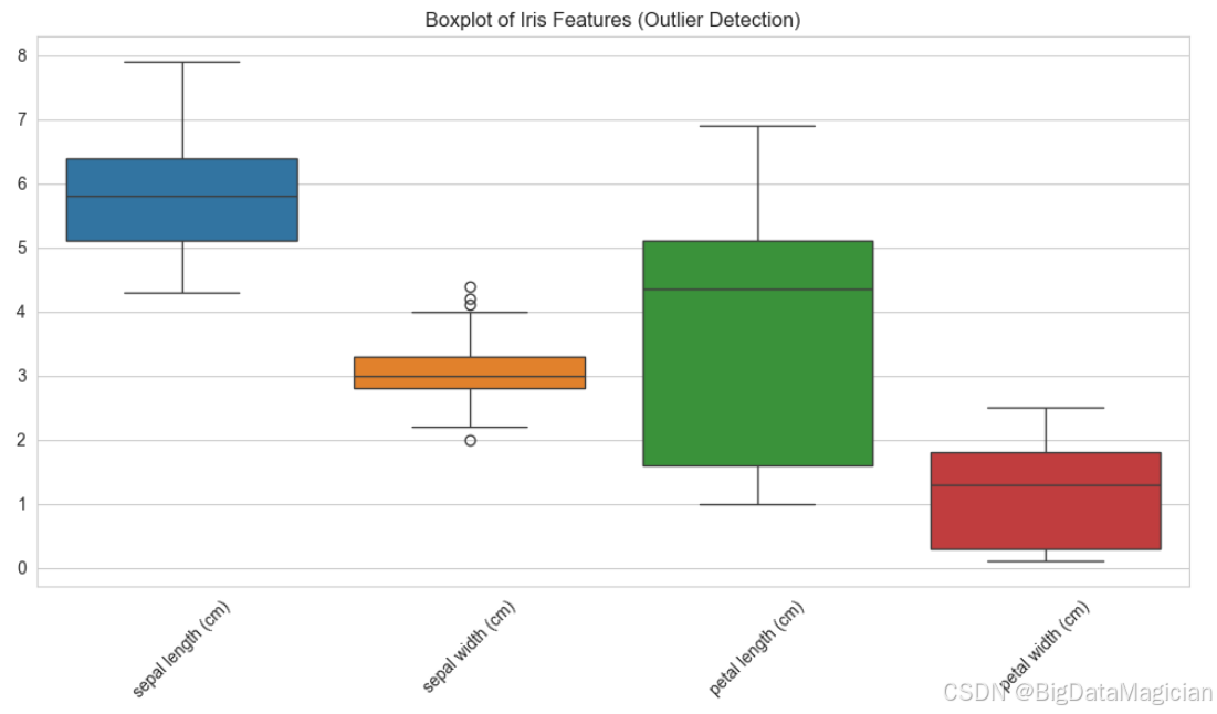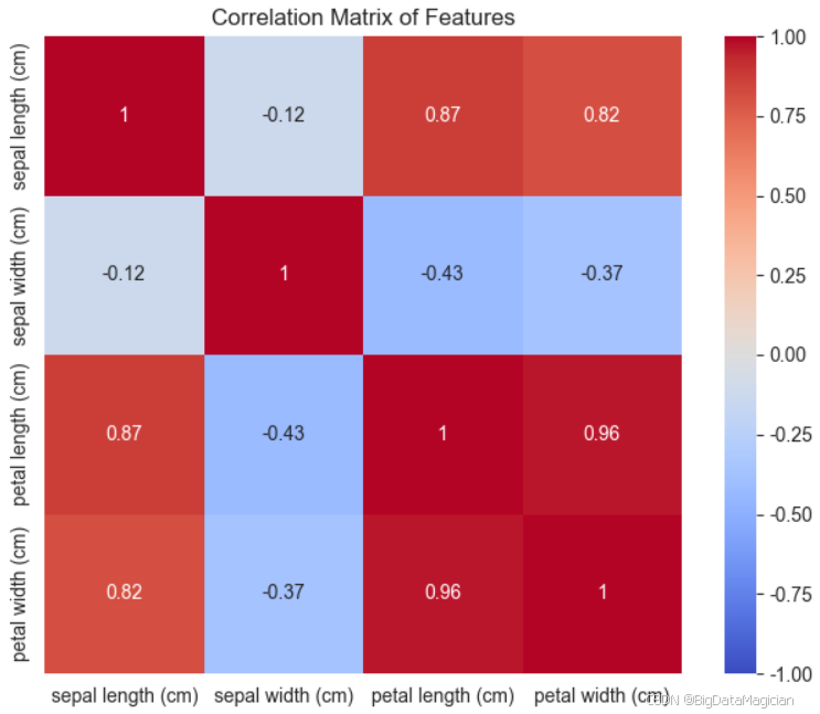 - 花萼宽度(-0.6453):负值,花萼宽度越大,virginica的概率越低(因setosa花萼更宽)。