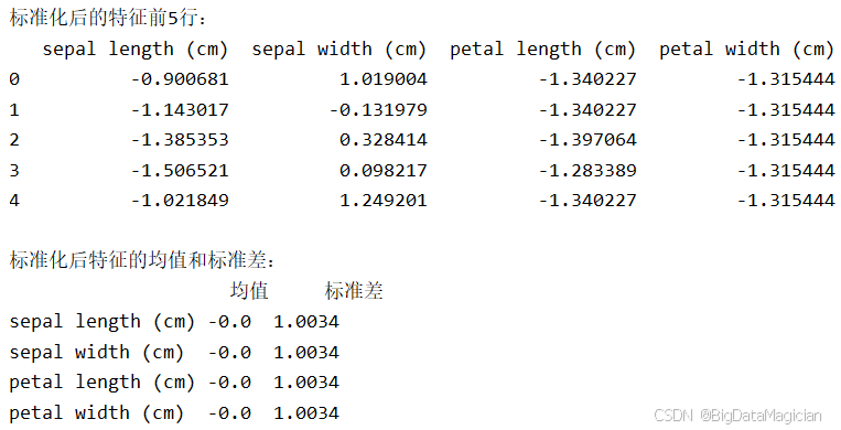 | versicolor | -1.7108 | 0.5340 | -0.3151 | -0.2061 | -0.6441 |
