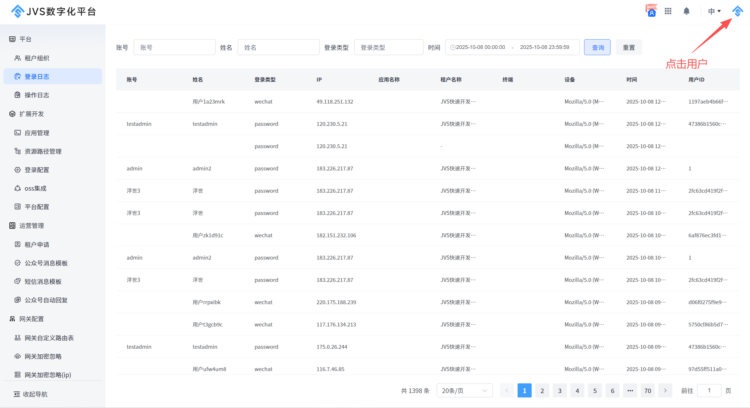 JVS中是支持多租户的 ,也是支持用户在不同租户中切换,登录系统后,点击用户头像