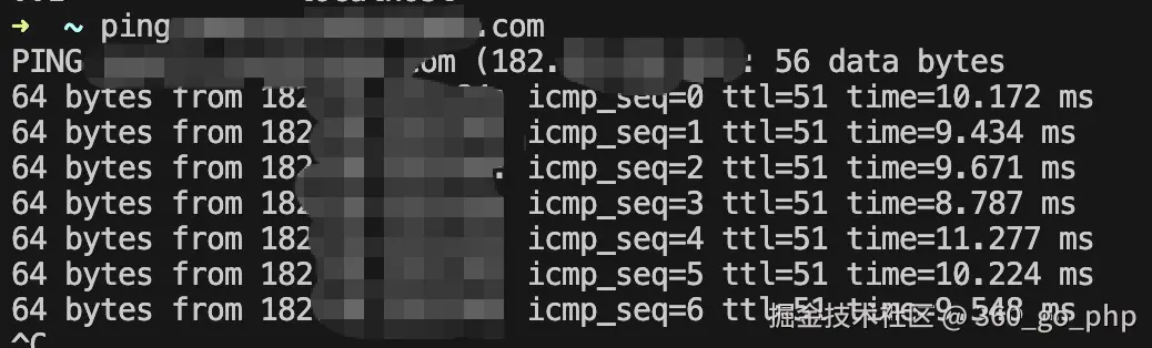 有时候服务可能由于负载均衡、DNS 变动等原因,导致域名解析的 IP 地址发生变化。因此,我们需要通过 ping 或 nslookup 命令,手动确认目标服务的 IP 地址。
