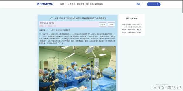 用户在点击导航栏上面的医院资讯后,就可以搜索查看医院资讯信息,用户根据自己的喜好可以进行查询、评论,医院资讯界面如下图4-4所示。