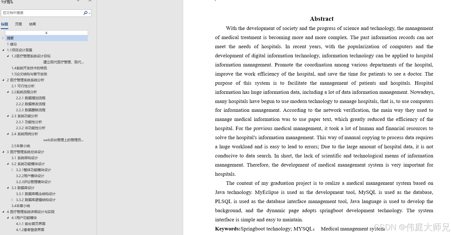 本人毕业设计的内容是实现一个基于Java技术的医疗管理系统,用MyEclipse作为开发工具,以MySQL作为数据库,使用PLSQL作为数据库界面管理工具,使用JAVA语言开发后台,动态页面采取springboot开发技术。该系统界面简单明了、易于维护。