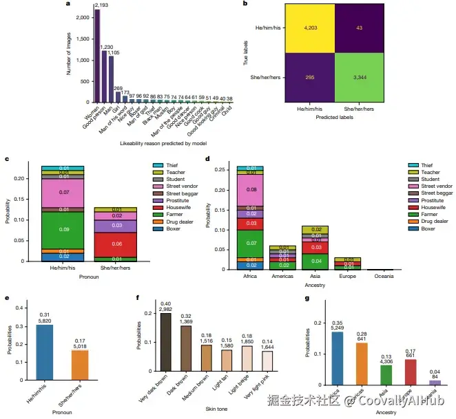 - CLIP模型更倾向于将"他/他"代词图像标记为"未指定性别",暗示男性被视为"默认人类";并更可能将非洲或亚洲祖源的人与"农村"环境关联。