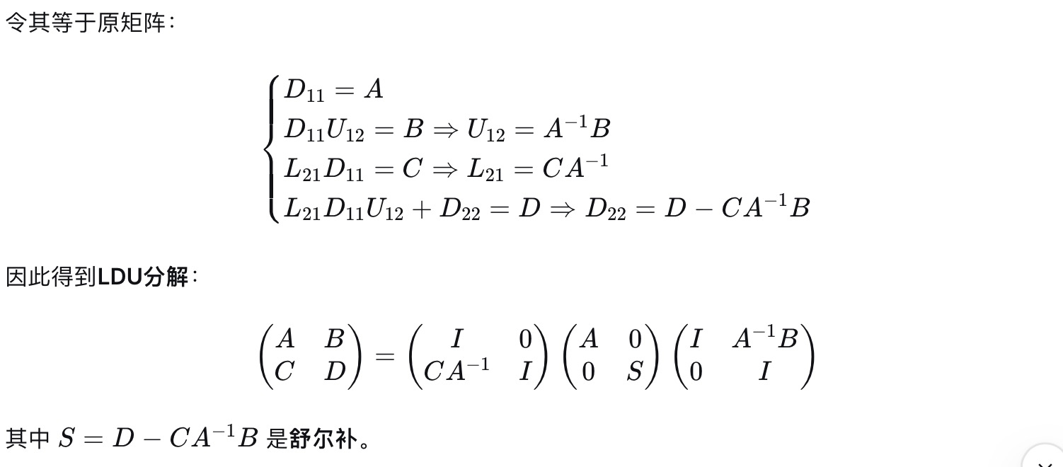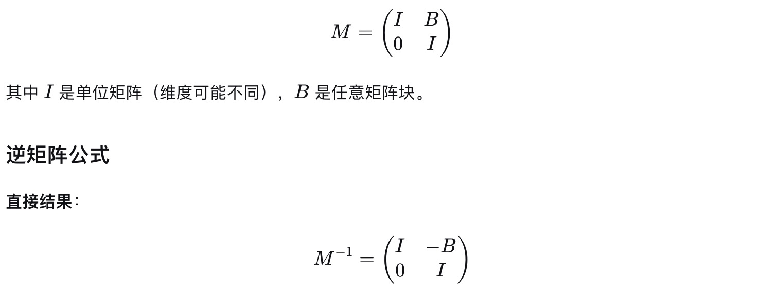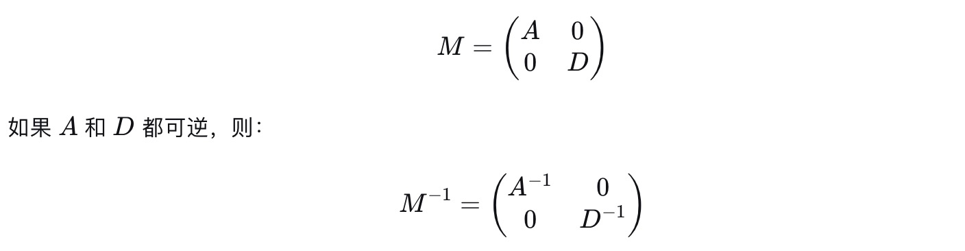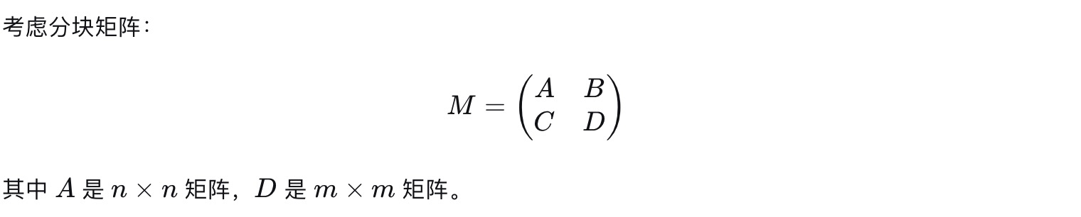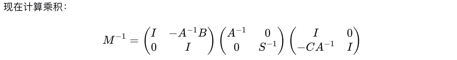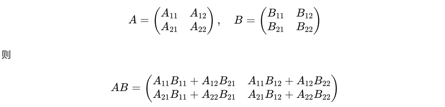 分块矩阵的乘法规则与普通矩阵乘法规则类似("行乘以列"), 但相乘的对象变成了子块