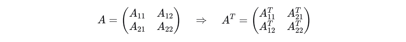 a.对整个块结构进行转置(就像普通矩阵一样, 行变列, 列变行)