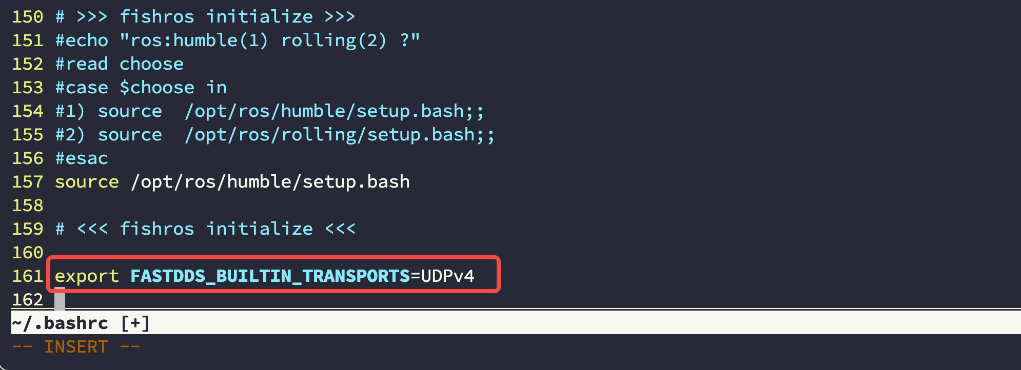修改宿主机和容器的 ~/.bashrc 文件,在文件末尾添加以下环境变量,该环境变量的含义是在使用 FastDDS (ROS2默认通讯协议)时只以 UDPv4 形式运行,那么如果你的所有节点都在同一个硬件上,相当于 所有数据又走了一圈网卡,而共享内存则直接访问文件。