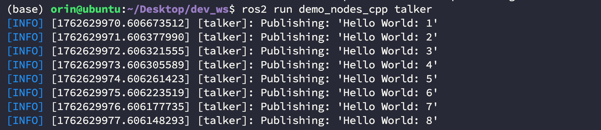 $ ros2 run demo_nodes_cpp talker