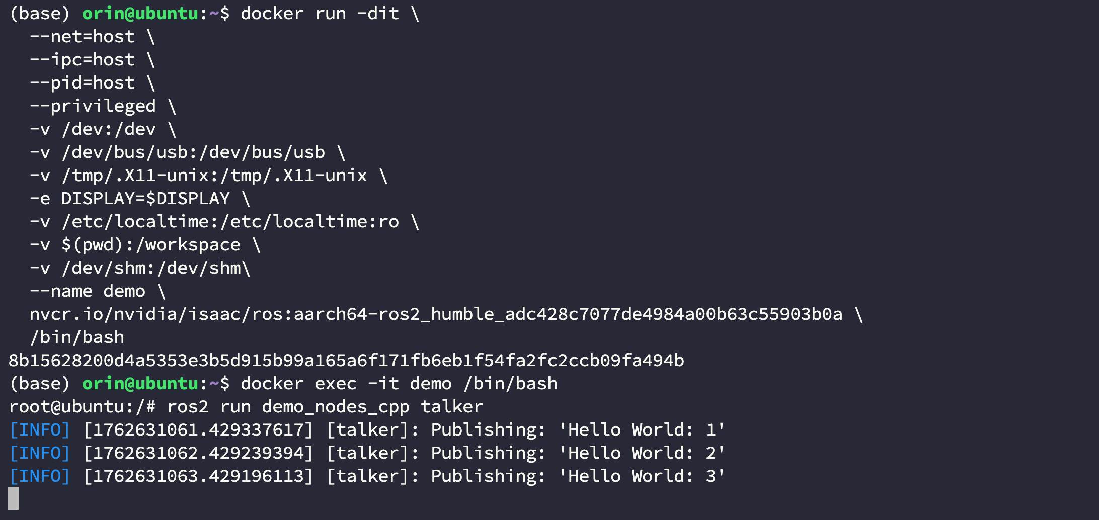 root@ubuntu:/# ros2 run demo_nodes_cpp talker