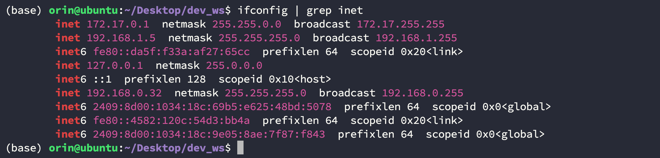 $ ifconfig | grep inet