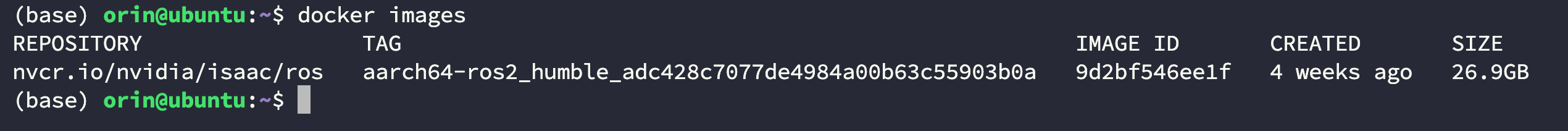 $ docker pull nvcr.io/nvidia/isaac/ros:aarch64-ros2_humble_adc428c7077de4984a00b63c55903b0a