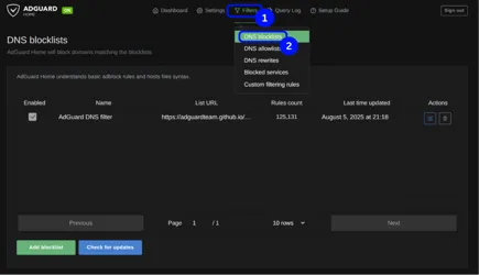 从顶部导航菜单中,点击 Filters 并选择 DNS blocklists。