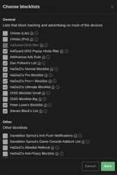 AdGuard 有一个内置的 DNS 过滤器,但你可以通过添加额外的黑名单来扩展其功能。这些公开维护的列表包含数以万计的已知广告、跟踪器、恶意软件和遥测域名。