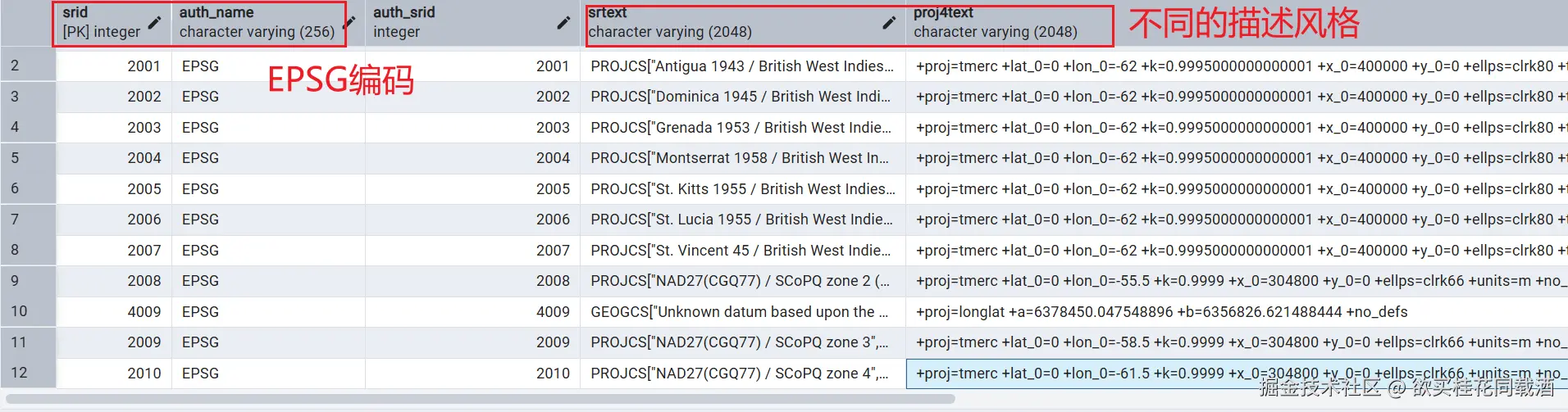 sptatial_ref_sys表: 需要添加自定坐标系按照表格内容填充信息即可