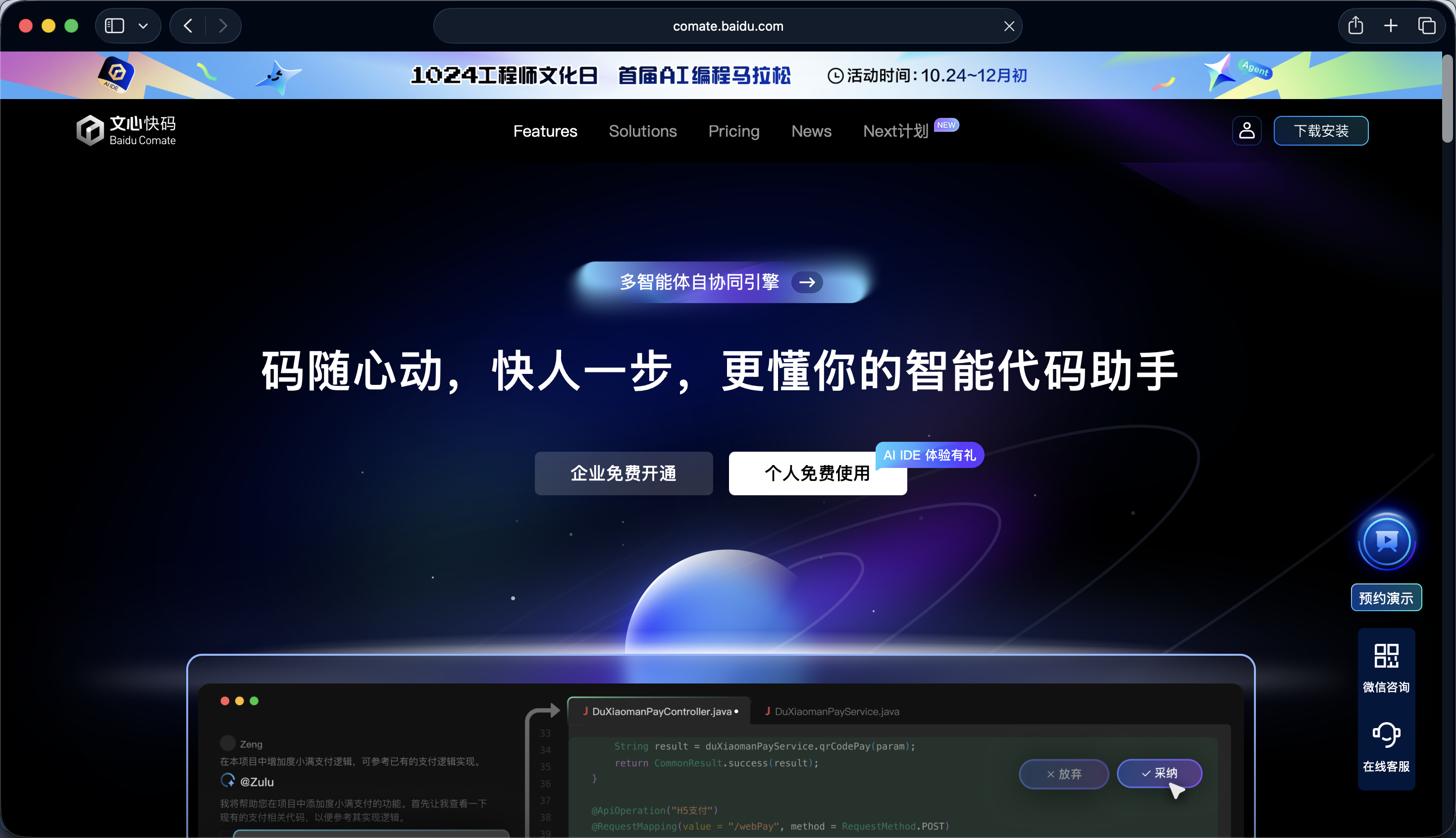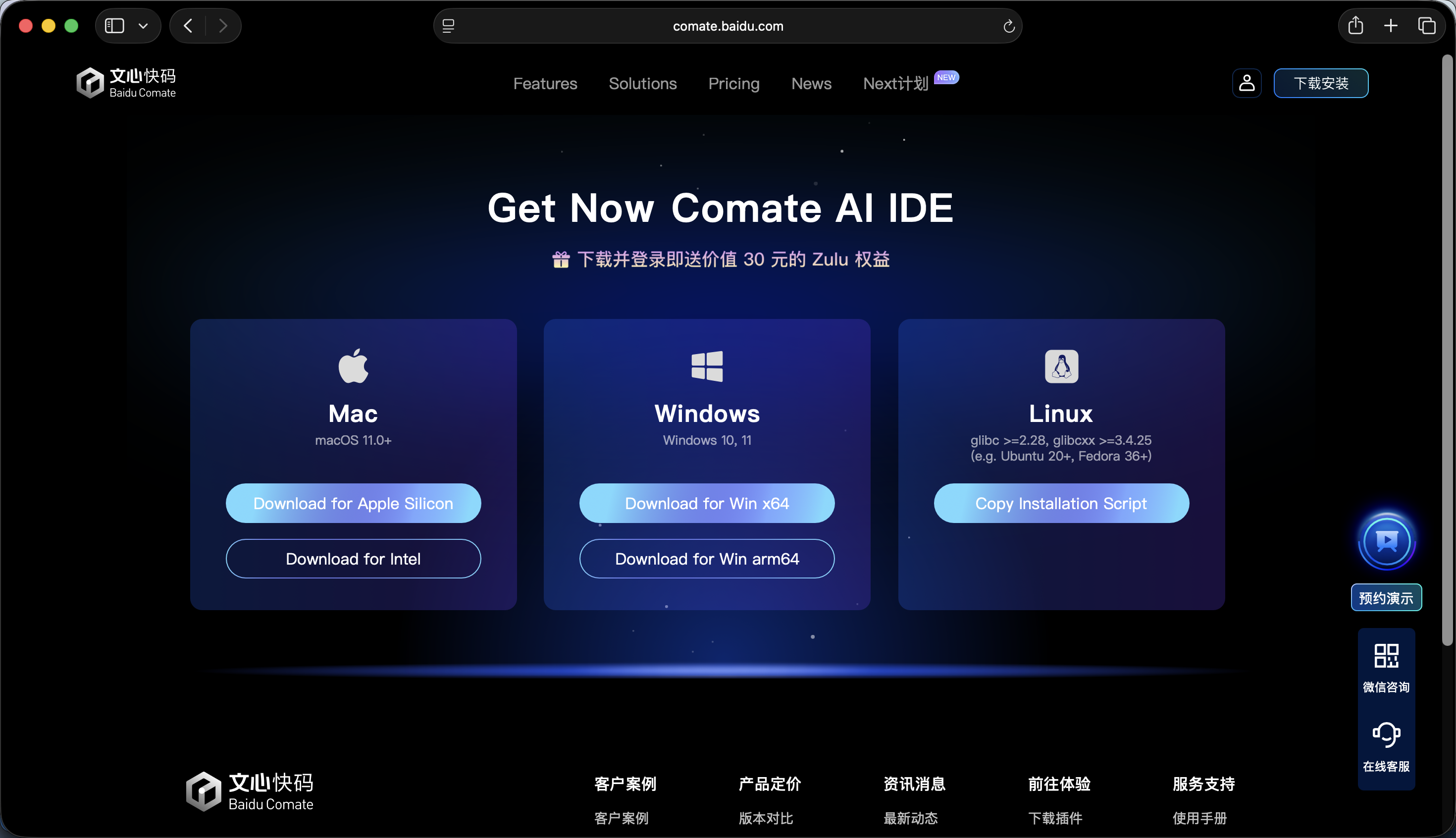 **官网下载地址:**https://comate.baidu.com/en/download/ai-ide