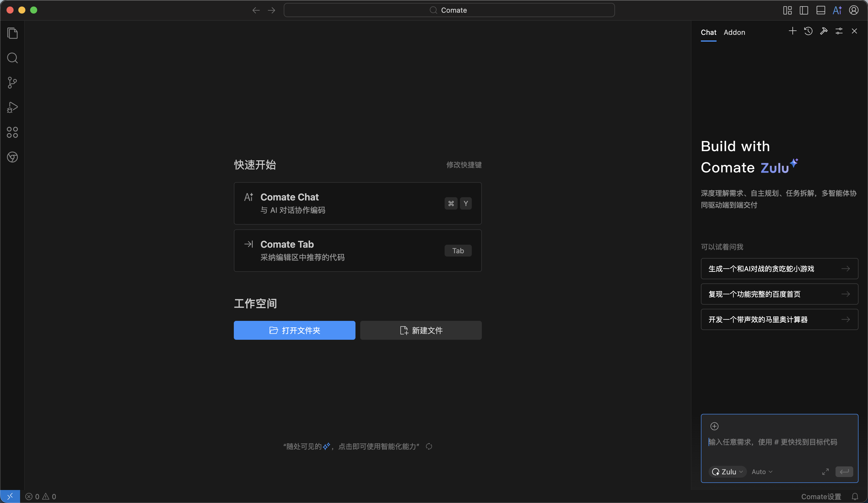 文心快码 (Baidu Comate) 是百度公司倾力打造的一款创新性 AI 编程助手。它深度融合了先进的人工智能技术,为开发者提供贯穿软件开发全流程的智能编码辅助,旨在创造更懂你的下一代编程体验。可以通过在 VSCode、JetBrains IDEs 等主流 IDE 中安装 Comate 插件,或直接使用功能强大的独立 AI IDE 来体验文心快码;这次我们就介绍下独立的 Comate IDE 。