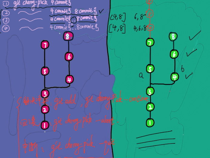 git cherry-pick <commit id1>^..<commit idn> # ^表示包含1 cherry-pick 1-8