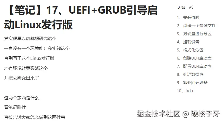 早些年的操作系统一般是使用MBR+BIOS,如今,一般是使用更为强大的GPT+UEFI。我的课程《手写操作系统》就是基于MBR+BIOS实现的。后面做的课程《手写Ubuntu Linux系统》就是基于GPT+UEFI实现的