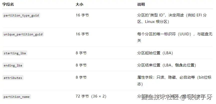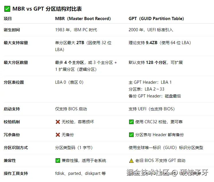 一、GPT磁盘分区结构中,依然会保留MBR扇区。你可能想问,那OS怎么知道是GPT分区结构呢?MBR扇区中有一个分区项,它的类型是0xEE,OS通过这个判断这块盘是MBR还是GPT