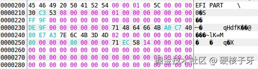 二、第二块分区,存放的是GPT的核心信息,如图