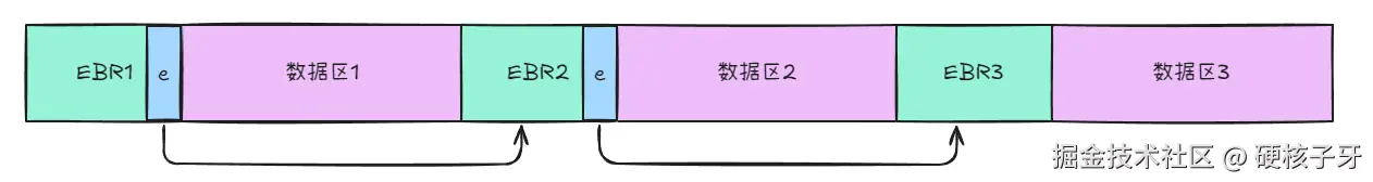 MBR还剩最后一个问题,如果有扩展分区,在硬盘中是如何存储的?这样