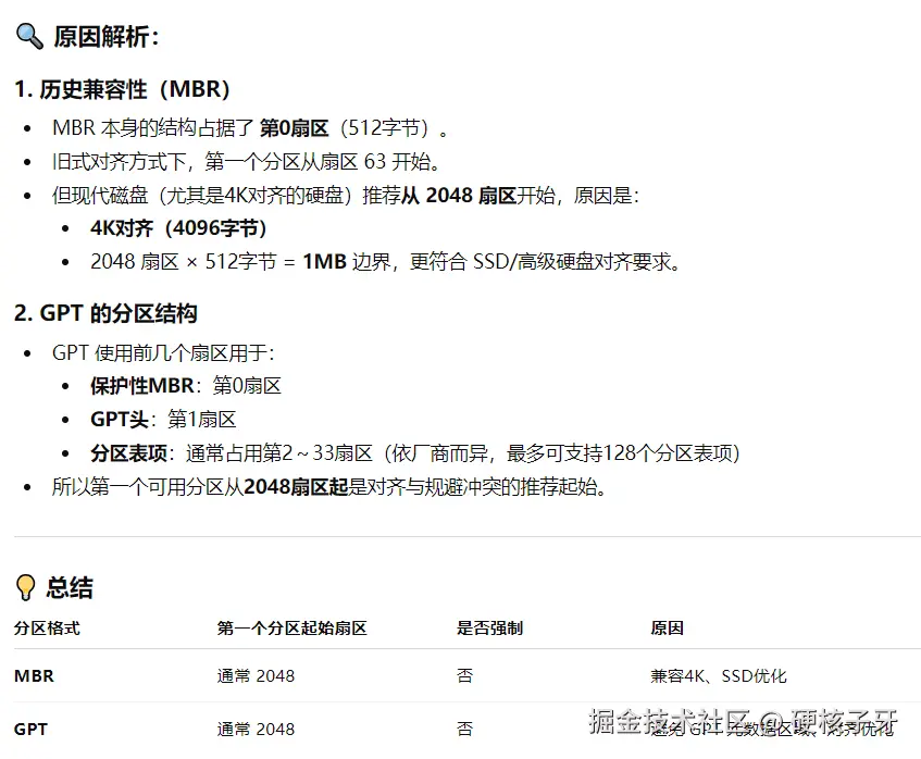 不知道你有没有注意,不论是MBR还是GPT,第一个分区都是从2048开始的。