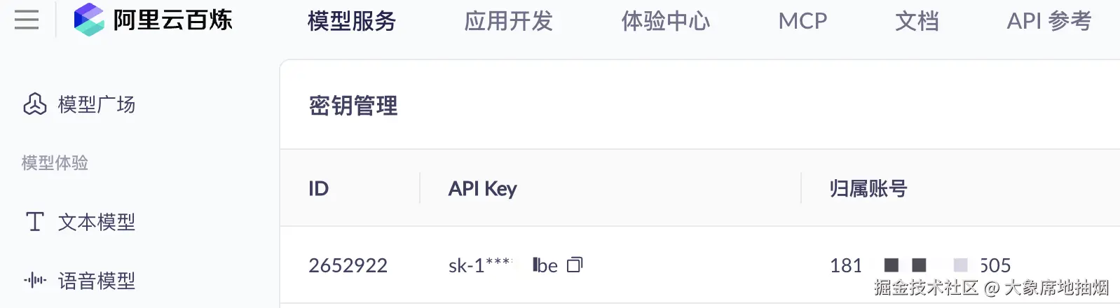 MY_APP_API_KEY是配置在环境变量中的密钥,在百炼大模型的控制台取得,如下