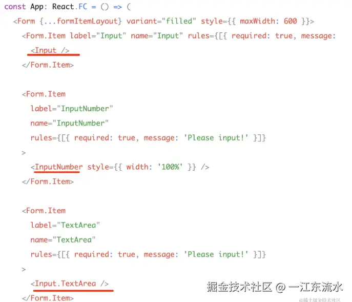 有的同学可能会说 Form 组件,确实,用 Form.Item 包裹的表单项都是受控组件: