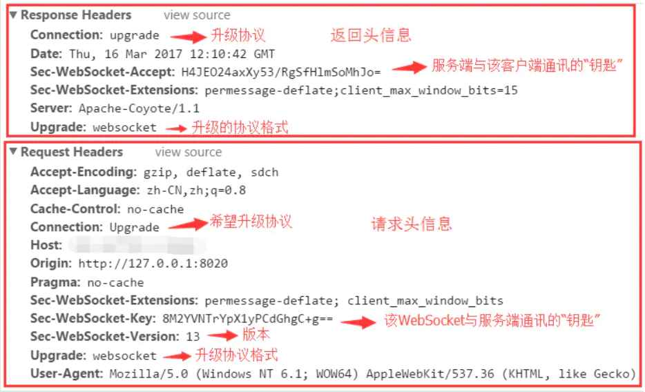 首先客户浏览器会先向服务器发一个升级请,求这个请求和通常的HTTP请求不同,包含了⼀些附加头信息,通过这个附加头信息完成握手过程并升级协议的过程