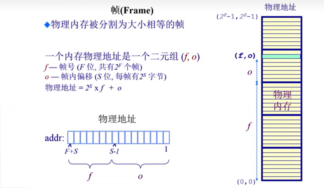 划分物理内存至固定大小的帧:大小为2的幂次,e.g. 512 4096 8192