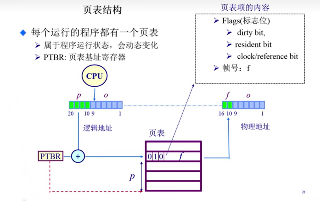 页表本质上是一个大数组,索引对应页号(page number)内容对应帧号(frame number);