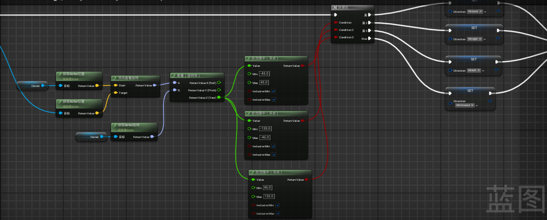 根据方向选择受击:通过owner的旋转与owner到attacker向量的差即可判断前后左右