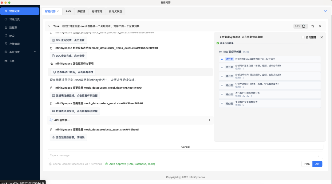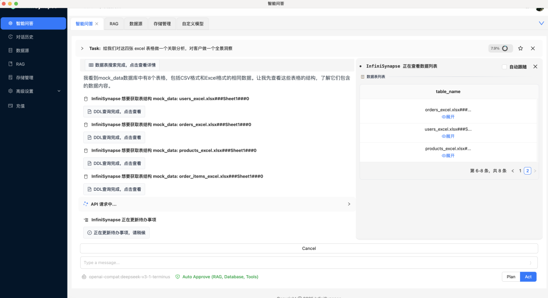InfiniSynapse 会自动把 Excel 注册成表(也支持多sheet):